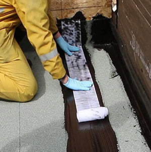 3 Course Method - cut to size, apply Liquid Rubber, embed Geo-Textile into Liquid Rubber, apply more Liquid Rubber. Similar to doing a drywall seam.
